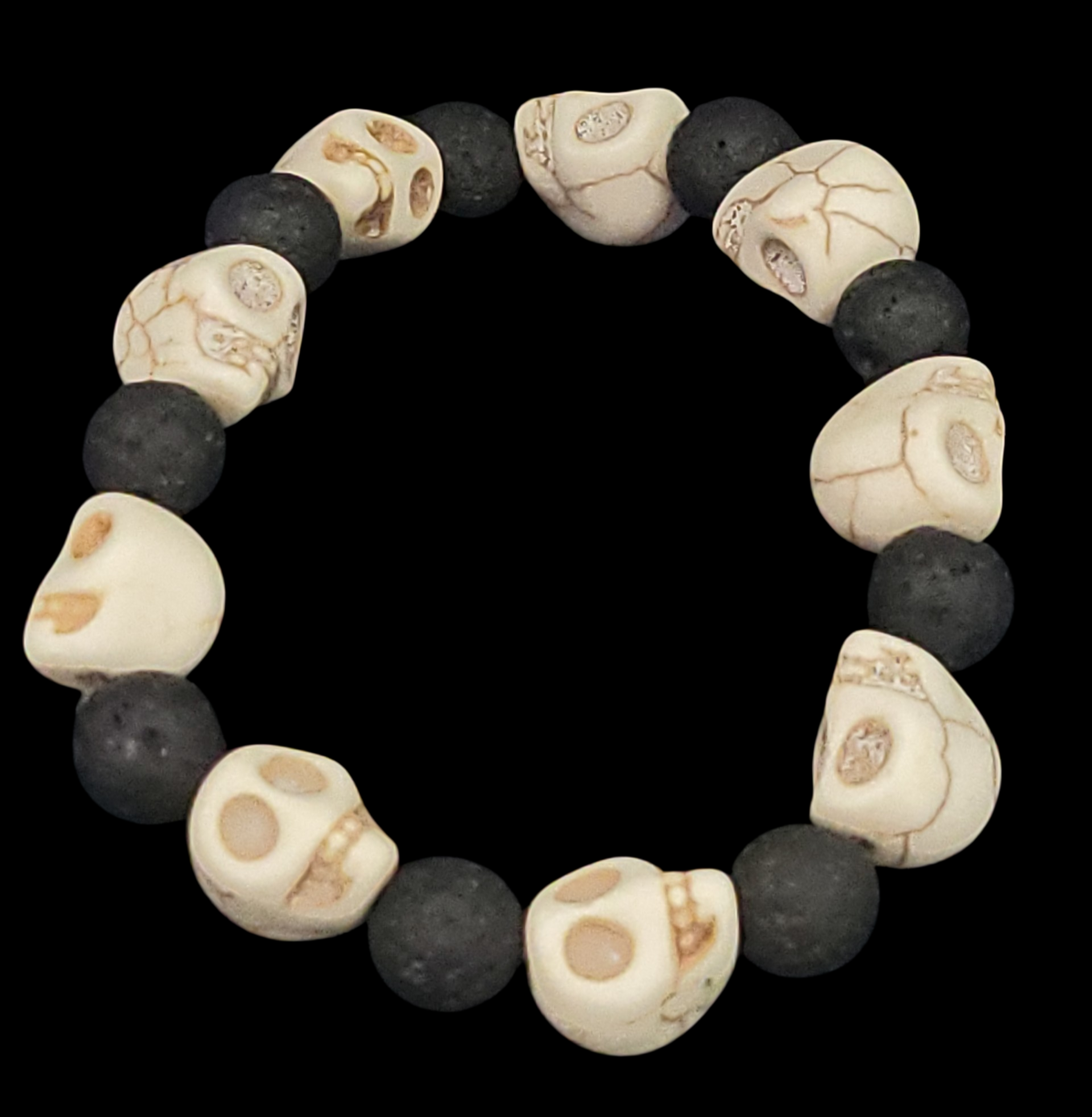 Lava Stone & Jumbo Painted Turquoise Skull Bracelet